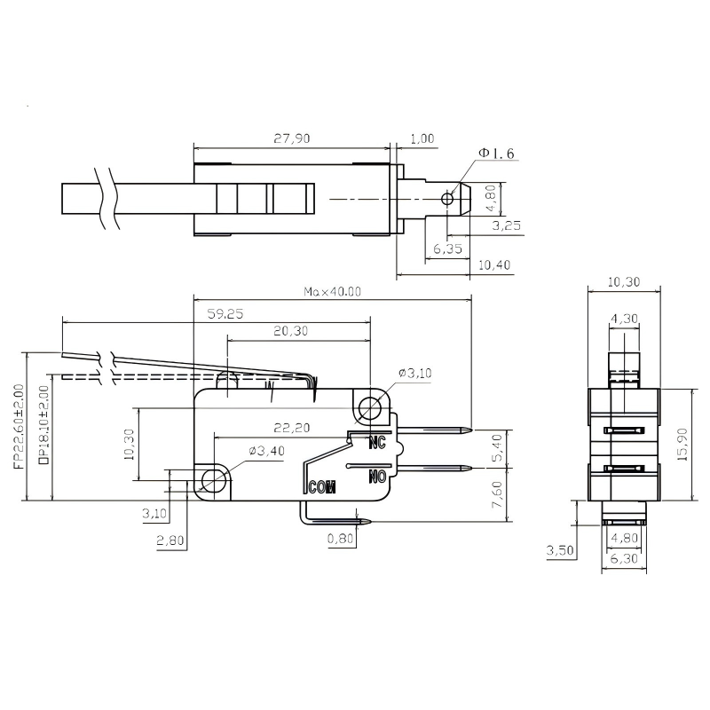 Milisekundi täpne käivitamine: kasutab kiiret mehhanismi lühikese käiguga 0,5–1,6 mm ja reguleeritava tööjõuga 0,25–4 N, pakkudes kiiret ja viivituseta reageerimist, et tõhusalt ära hoida "valepäästikuid". Sobib ülitäpsete stsenaariumide jaoks, nagu mikrolaineahju ukse juhtseadmed ja tööstuslikud andurid.