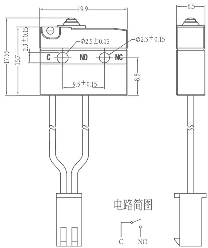 | 1 | Elektriline reiting | 0,1A 5(2)A 10(3)A 125/250VAC 0.1A 5A 36VDC | |